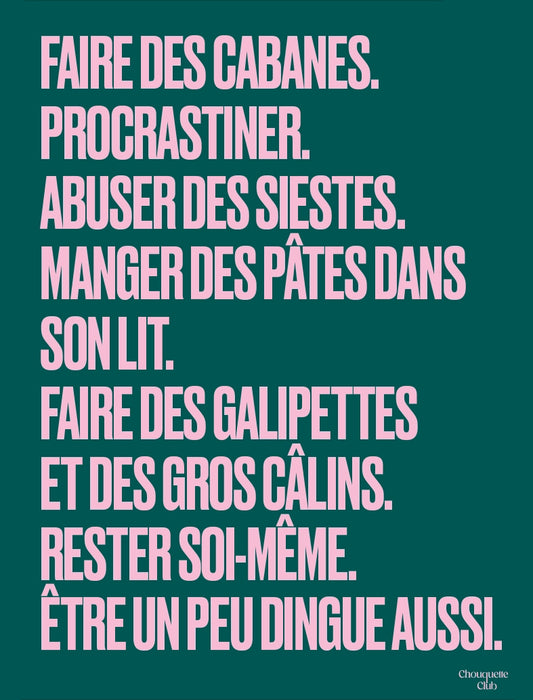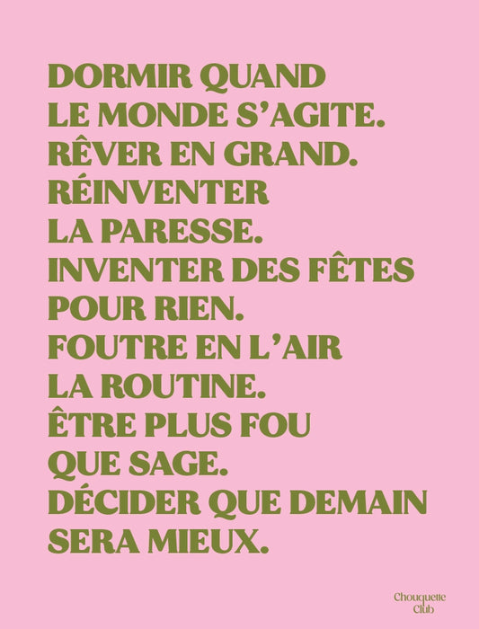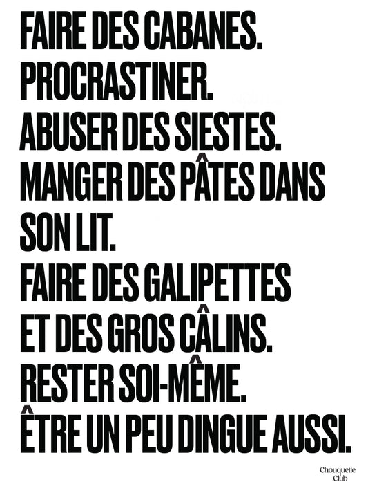 Découvrez la collection de posters Mantra, une ode décalée aux petits plaisirs de la vie en format 50 x 70 cm ou en format 42 x 59,4 cm. Imprimé en France sur du papier 250 g/m2 satin couché.