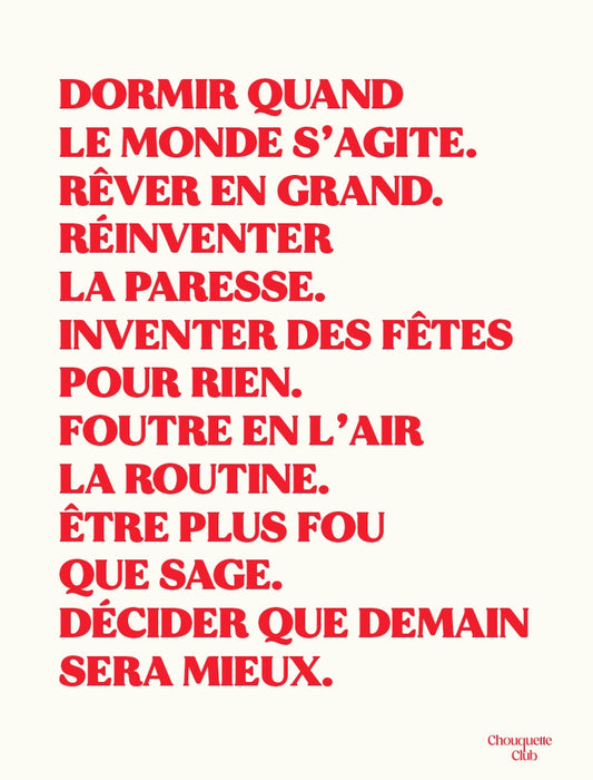 Poster Mantra #5 "Rêver en grand" écru/rouge