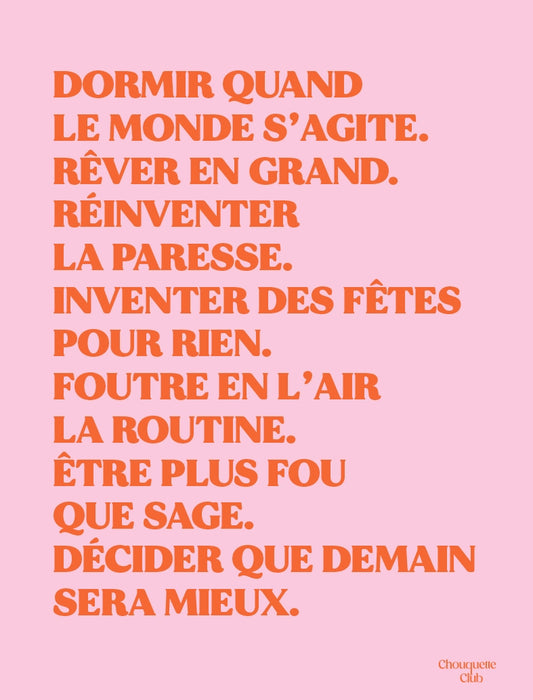 Poster Mantra #5 "Rêver en grand" rose et orange