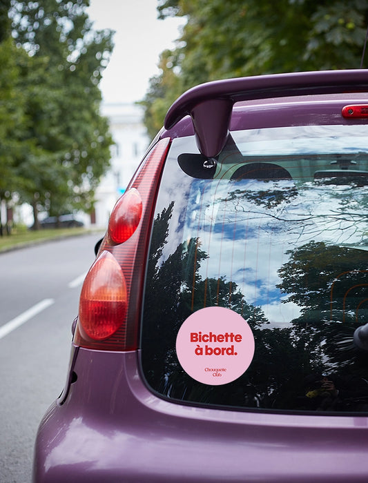Le grand classique. Pare-chocs arrière, lunette arrière, même le tableau de bord pour votre plaisir personnel. Vous connaissez les fameux "bébé à bord" qu'on voit partout ? Imaginez la tête du conducteur derrière vous quand il lit "Bichette à bord" ou "Crapule à bord" à la place. C'est le même principe, mais en beaucoup plus drôle. Et ça, c'est exactement le genre de stickers humoristiques qui font la signature Chouquette Club.